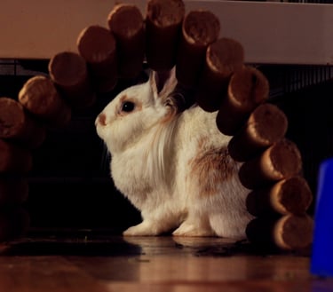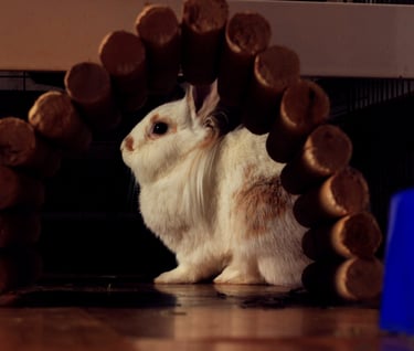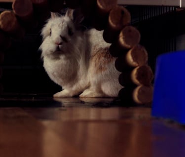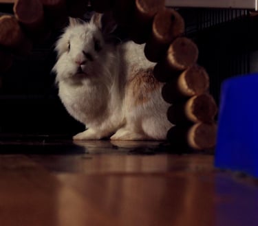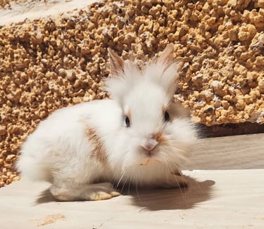 Es una conejita preciosa, muy sociable y cariñosa, además de inteligente, que reconoce cada sonido, y lo que ocurre después. Se lleva genial con su nuevo compi Rick, y han hecho una gran piña este par de pulguitas.